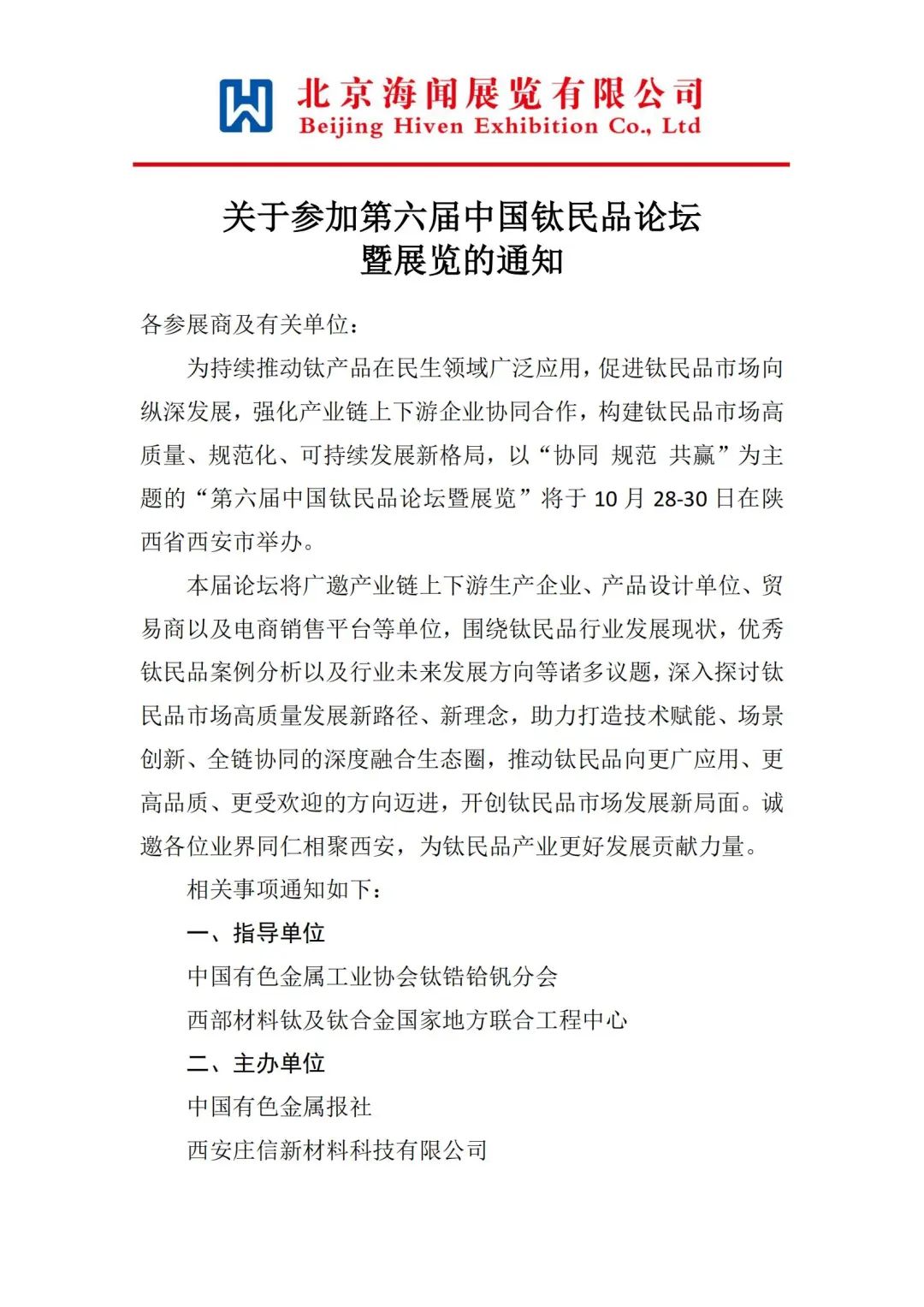 关于参加第六届中国钛民品论坛暨展览的通知(含展位图)